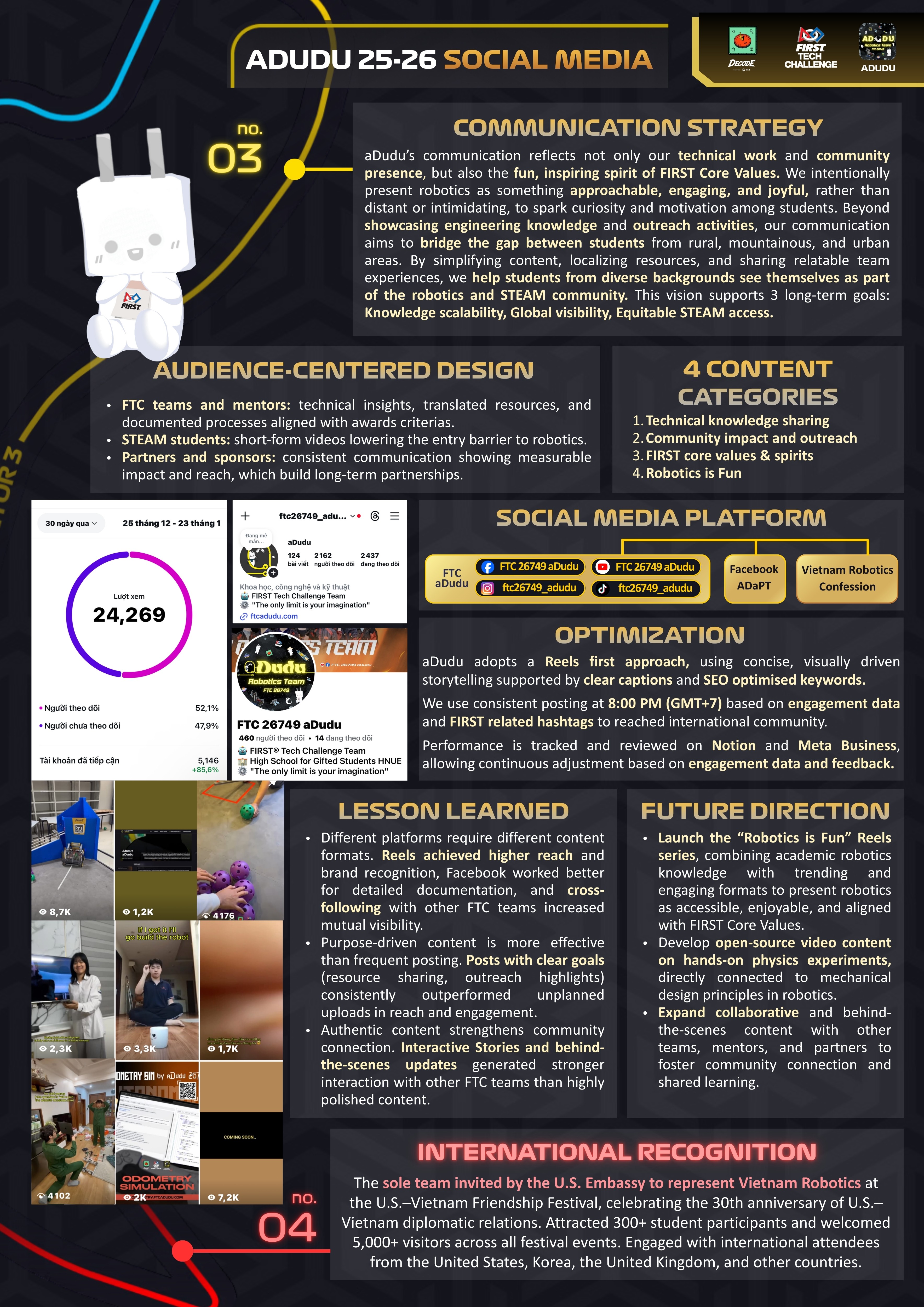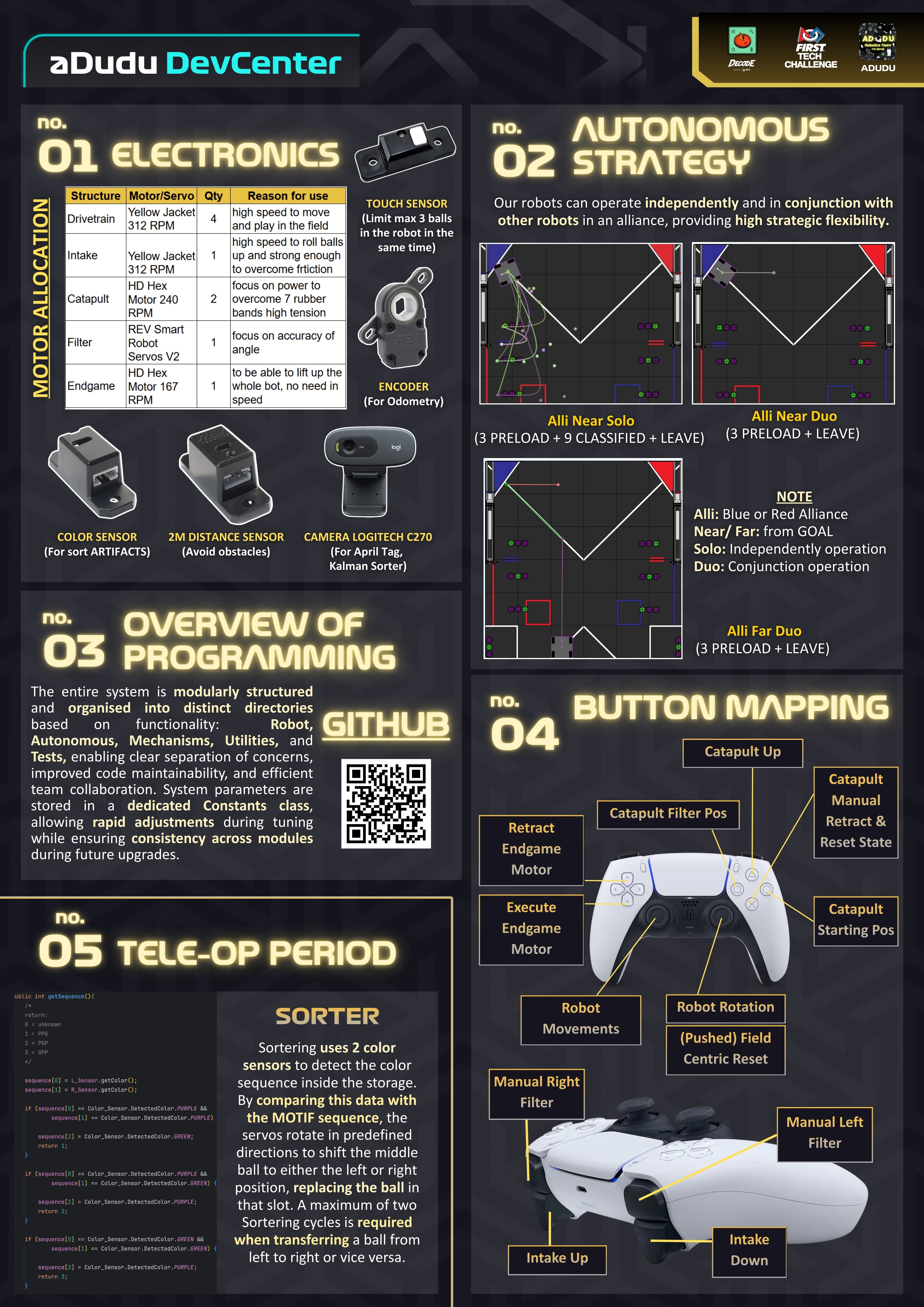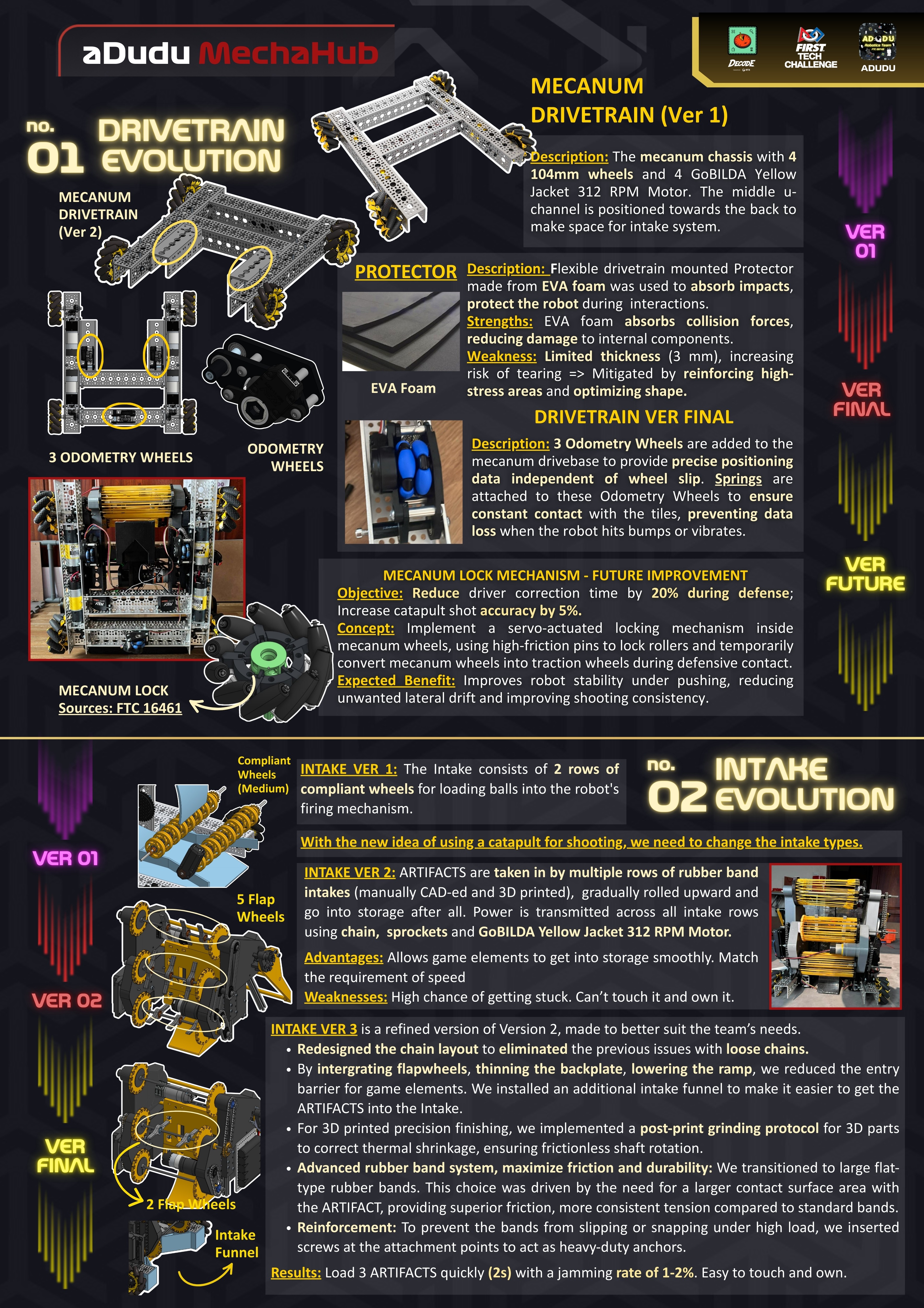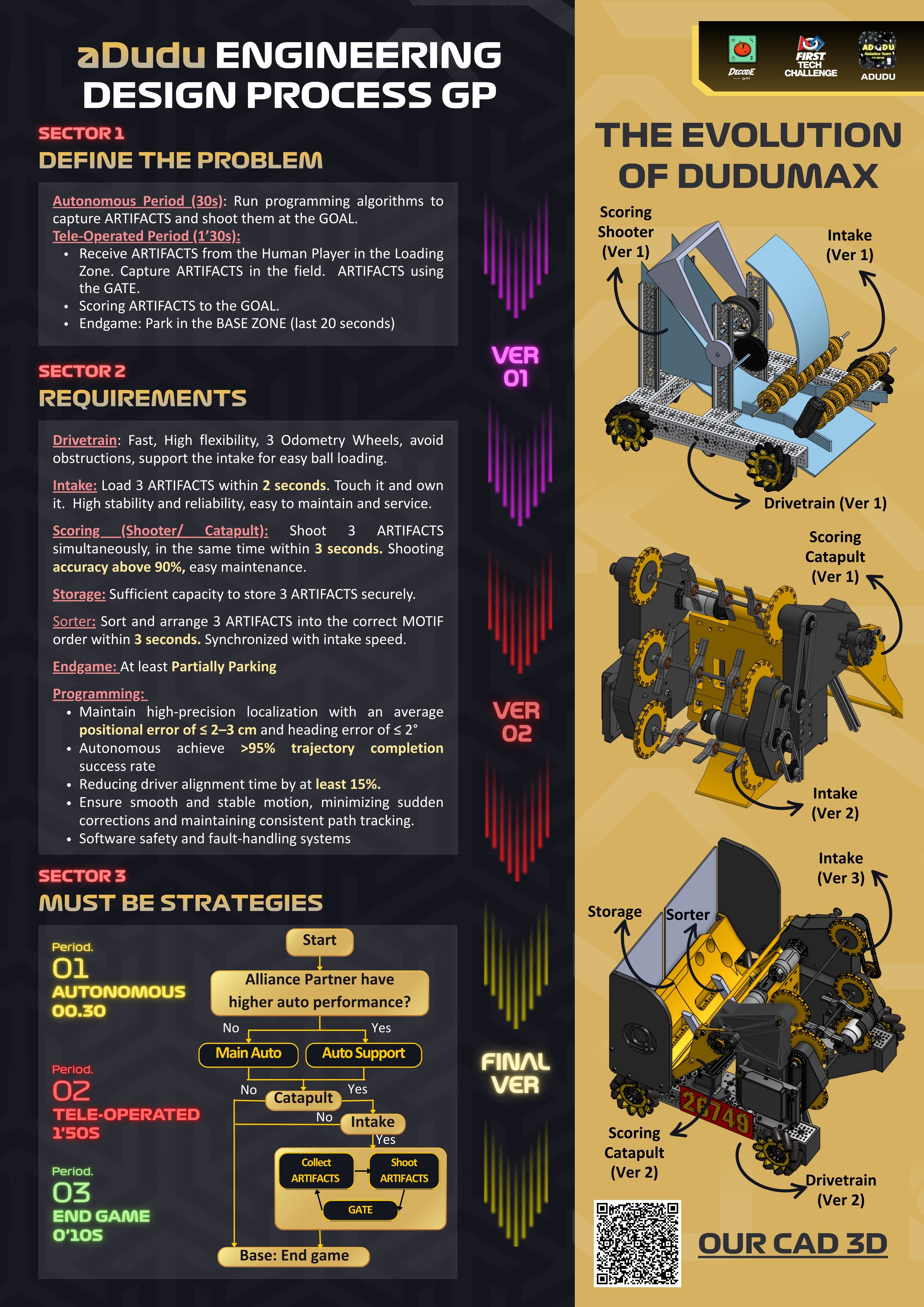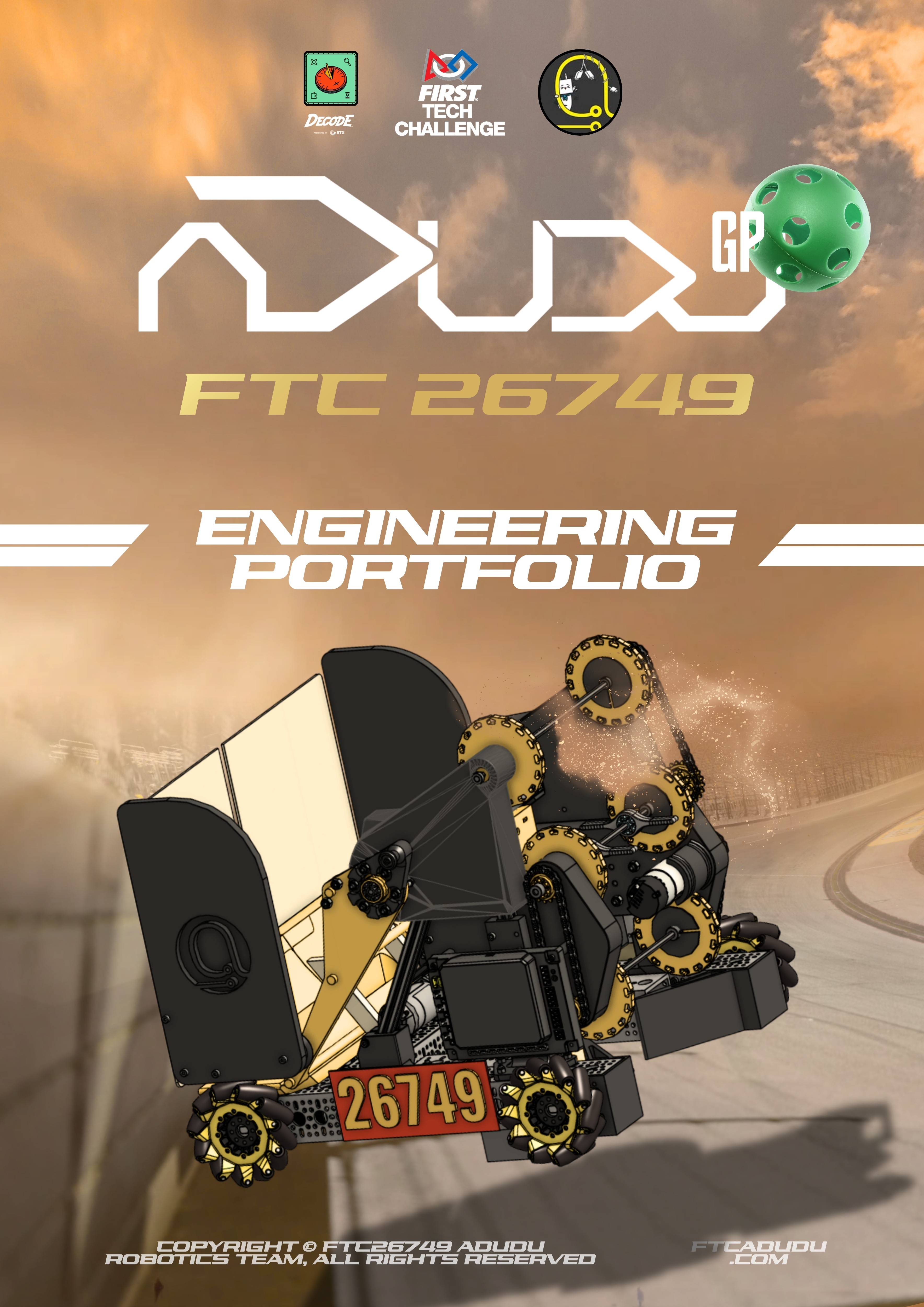 This is the Official Engineering Portfolio of FTC Team 26749 aDudu for the FIRST Tech Challenge DECODE 2025–2026 season. The portfolio provides comprehensive and in-depth information about our team, robot design, engineering process, competition strategies, and community outreach activities.