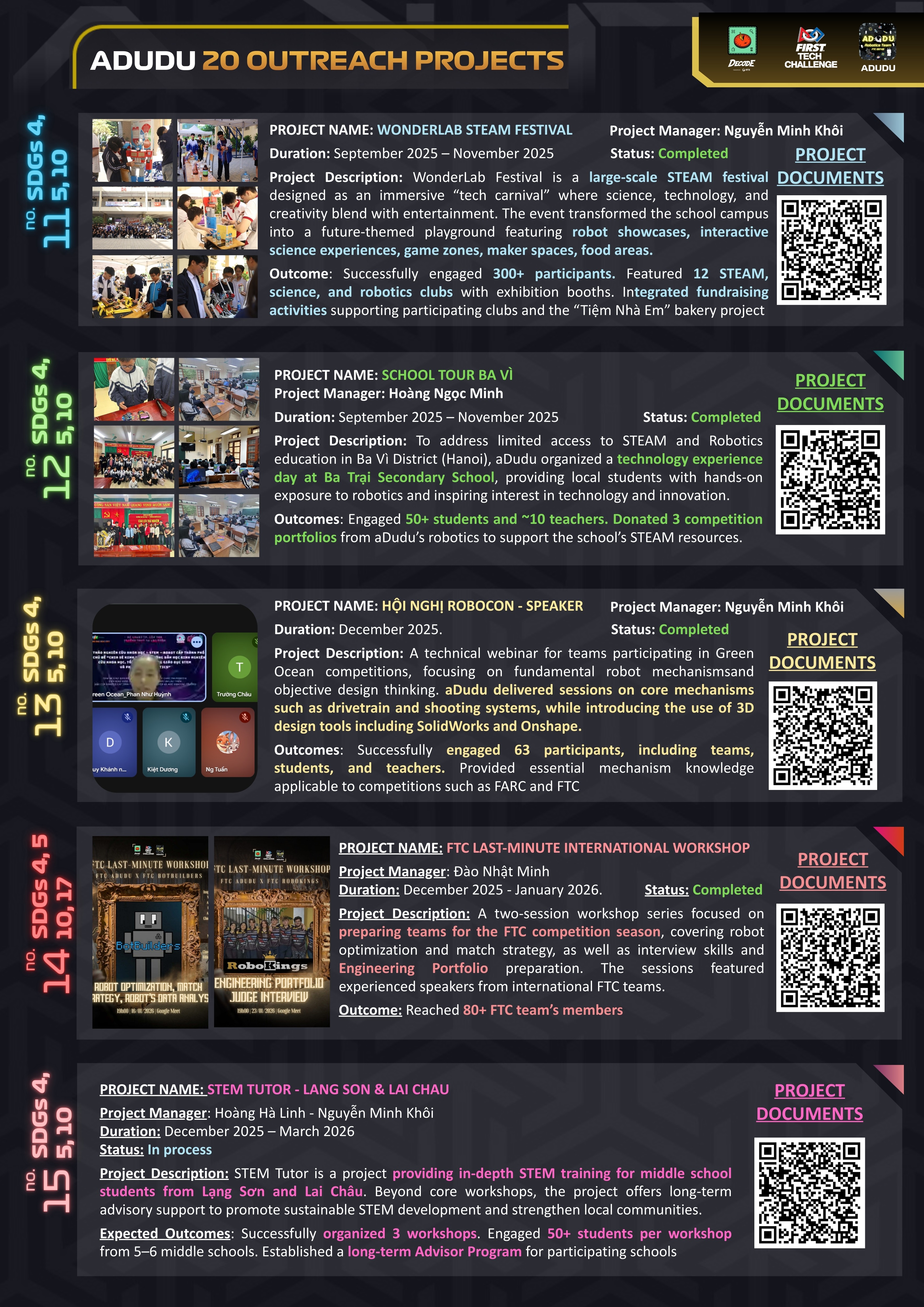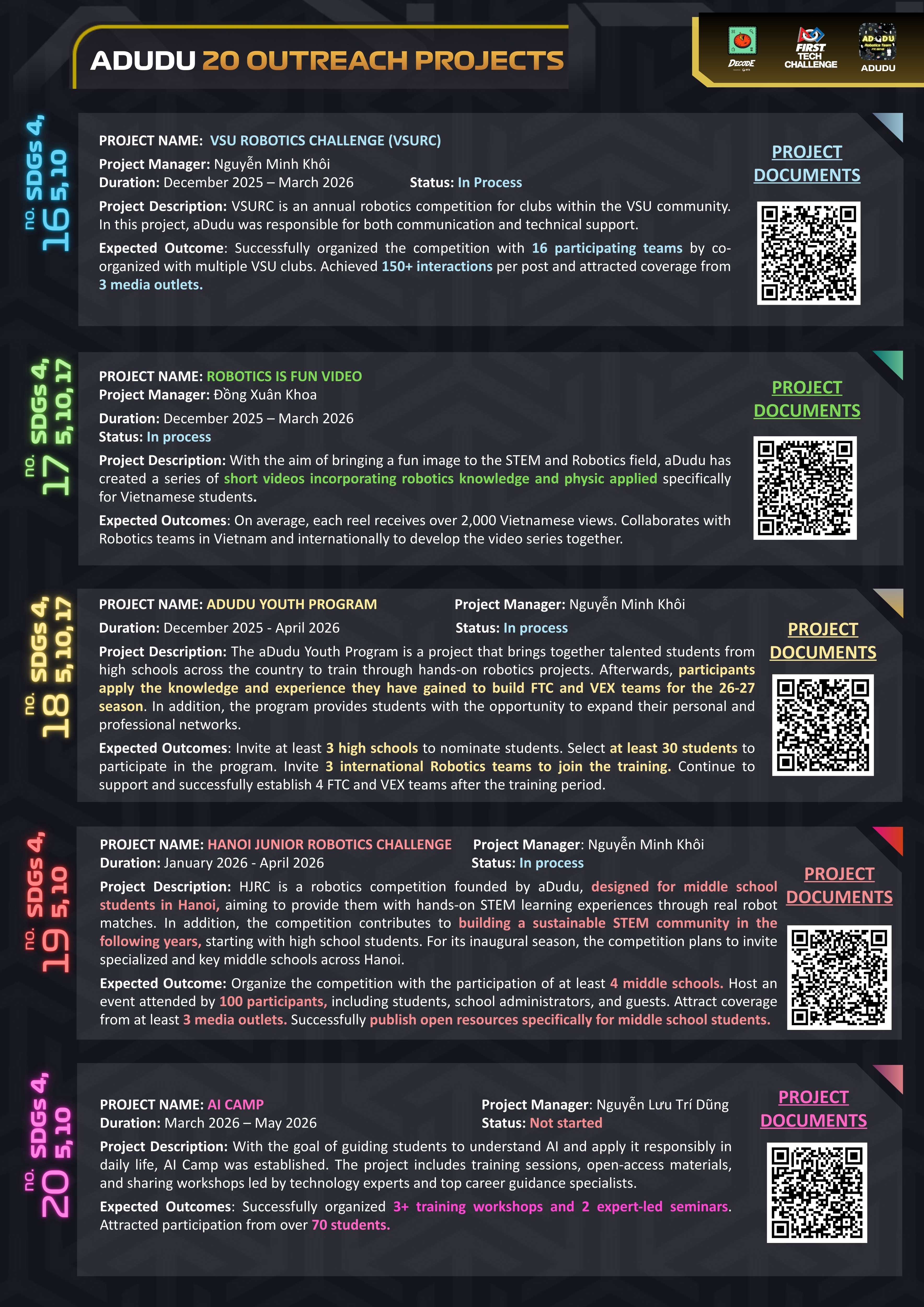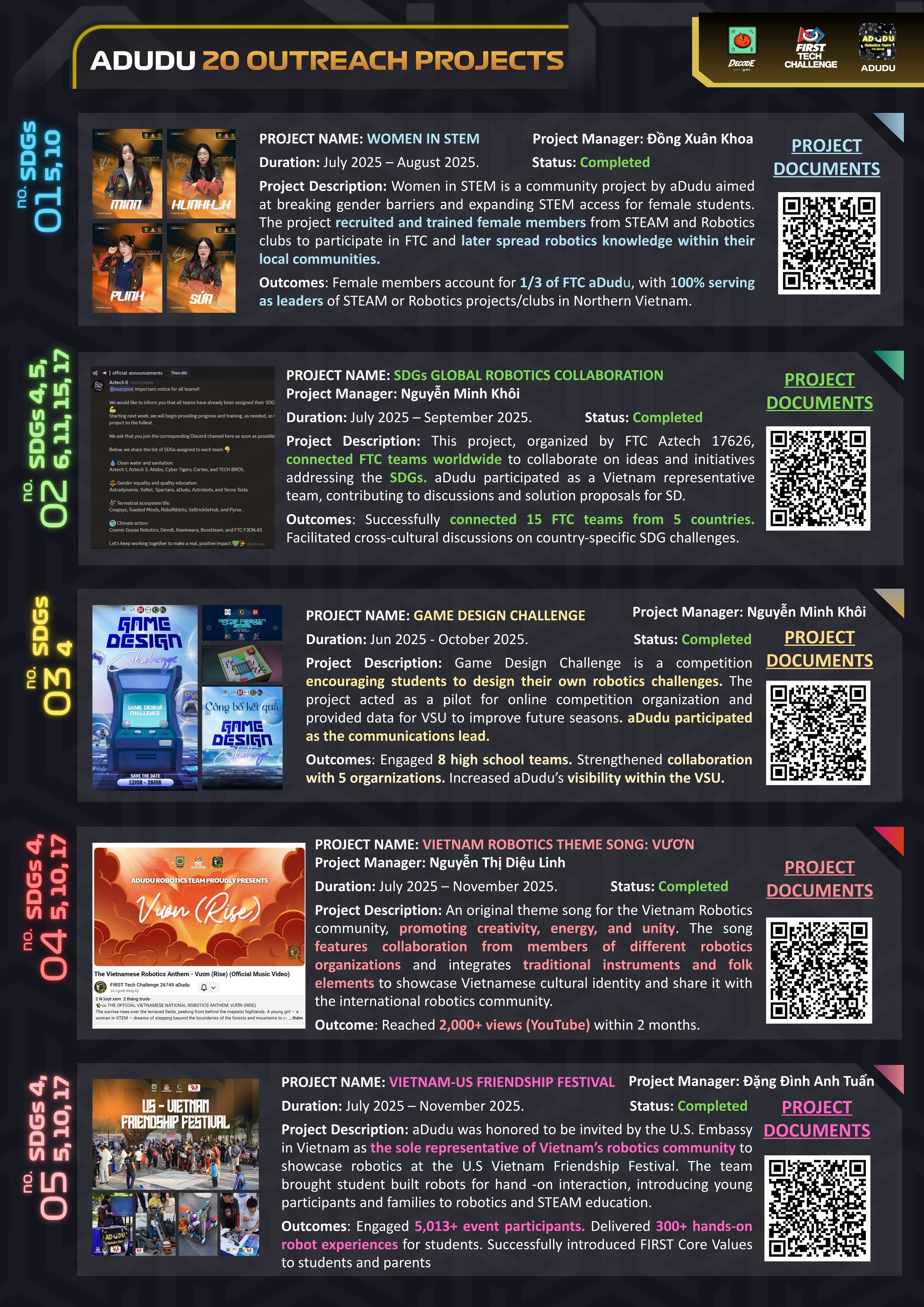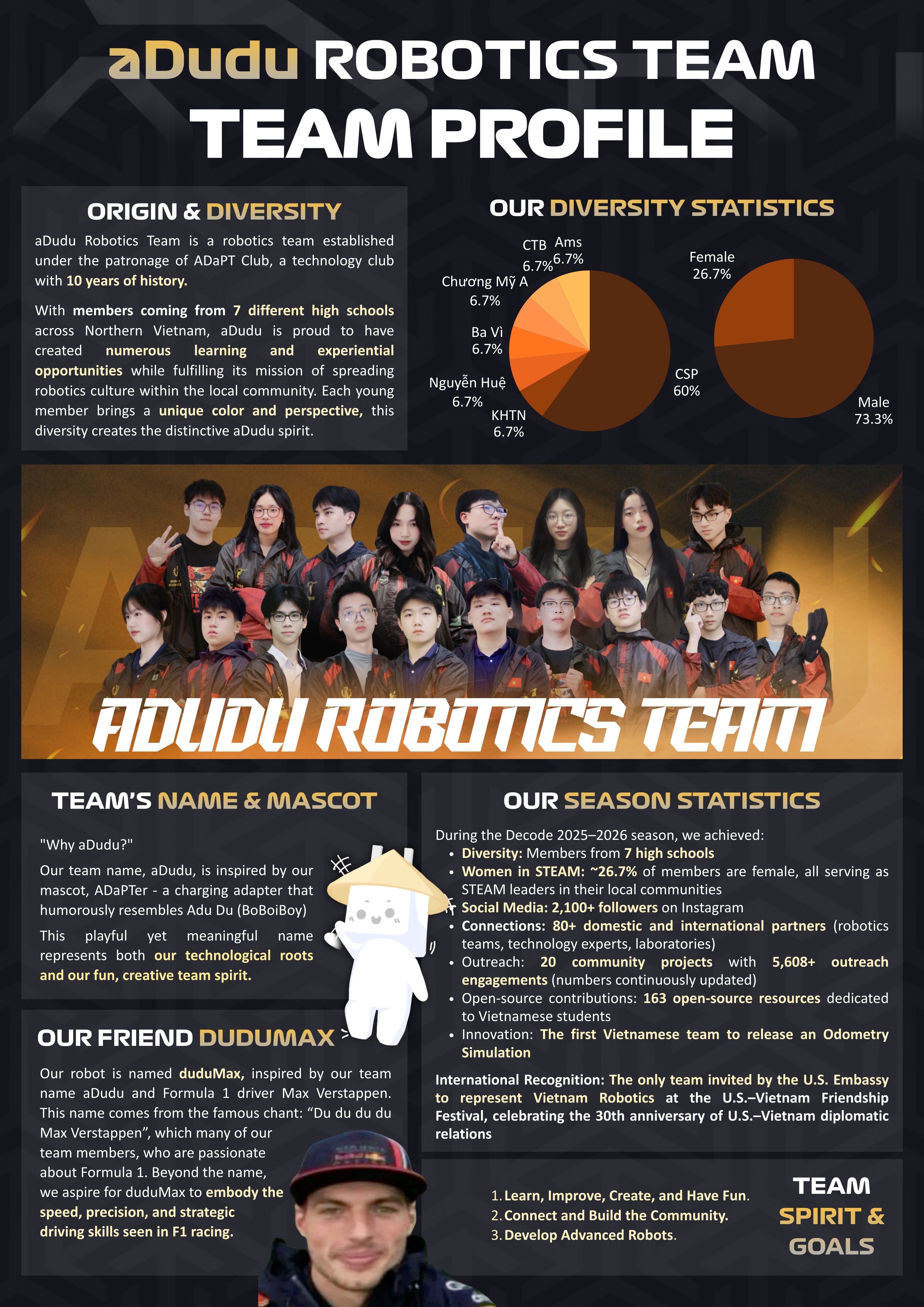 A proud team of passionate Robotics Enthusiasts competing in nation-wide Technology competitions in Vietnam, the FIRST Tech Challenge and the FIRST Robotics Competition.