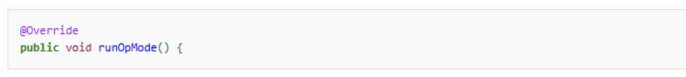 Tiếp theo, có một phương thức được ghi đè tên là runOpMode. Mọi OpMode thuộc loại LinearOpMode đều phải triển khai phương thức này. Phương thức này sẽ được gọi khi người dùng chọn và chạy OpMode.