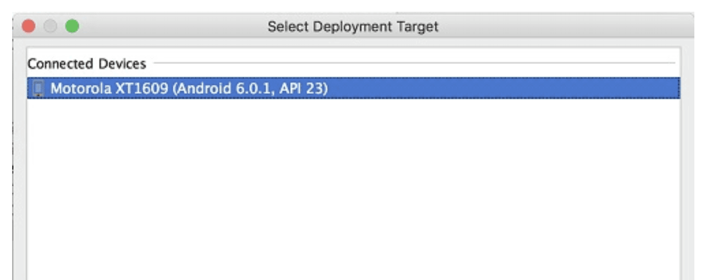 Hãy đảm bảo bạn chọn đúng thiết bị mục tiêu. Trong hình trên, điện thoại Motorola được chọn làm thiết bị mục tiêu. Nhấn OK để xây dựng tệp APK và cài đặt nó lên thiết bị mục tiêu.