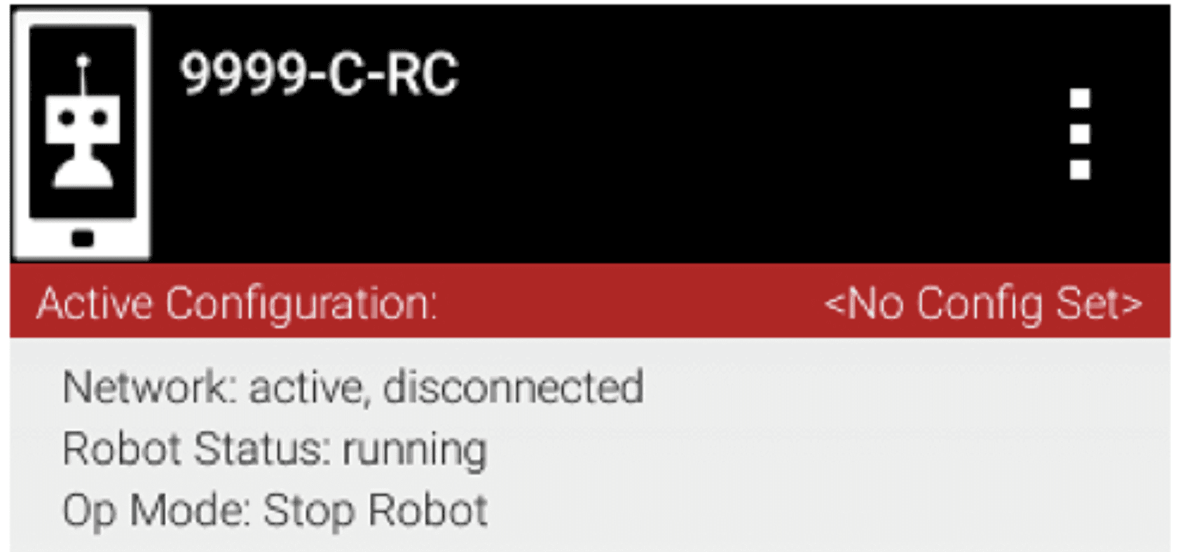 Nếu cài đặt thành công, ứng dụng Robot Controller sẽ khởi động trên thiết bị Android mục tiêu. Nếu bạn đang sử dụng điện thoại Android làm Robot Controller, bạn sẽ thấy màn hình chính của ứng dụng Robot Controller hiển thị trên điện thoại.