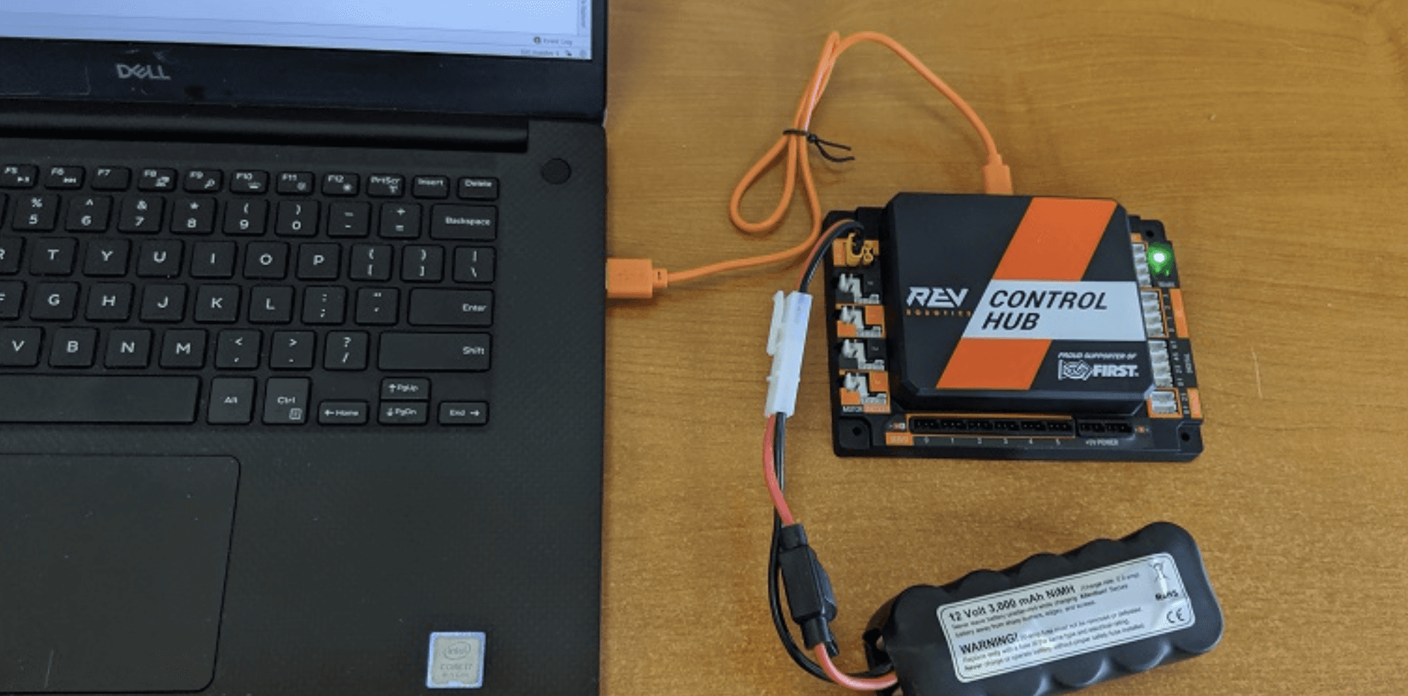 Hoặc, nếu bạn đang sử dụng Control Hub, hãy đảm bảo rằng Control Hub được cấp nguồn bằng pin 12V mới sạc đầy và được kết nối với máy tính xách tay qua cổng USB Type C. Lưu ý rằng Control Hub sẽ tự động được bật quyền gỡ lỗi USB.
